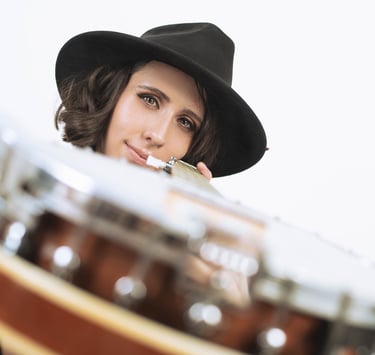 Desde pequeña, descubrí mi pasión por la música y comencé a tocar la guitarra a los 11 años. Con el tiempo, exploré otros instrumentos como el ukulele, el piano y el banjo, y me enamoré de géneros como el country, el folk, el blues y el rock clásico.